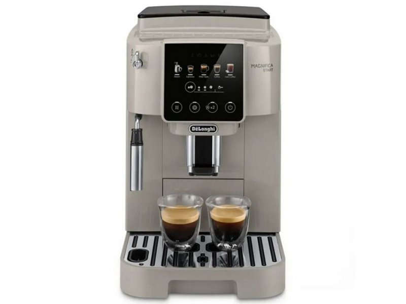 Бежевая кофемашина Magnifica Start ECAM220.50.BG — новинка. Цветной сенсорный экран с понятными значками позволяют приготовить любимый напиток одним касанием: Эспрессо, Фильтрованный, Кофе, Американо со льдом. Насадка Панарелло позволяет взбить пышную молочную пену для создания таких напитков, как капучино и латте.
